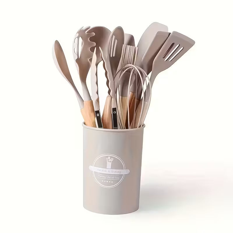 Šis 12 dalių virtuvės įrankių rinkinys pakeis jūsų gaminimo patirtį, suteikdamas komfortą ir kontrolę kiekviename judesyje. Kiekvienas įrankis sukurtas universalus – tinka tiek sriuboms maišyti, tiek blynams vartyti ar makaronams patiekti. Minkštos, nelimpančios silikoninės galvutės švelniai slysta per indus, apsaugodamos juos nuo įbrėžimų ir užtikrindamos, kad jūsų puodai bei keptuvės ilgai išliks kaip nauji.