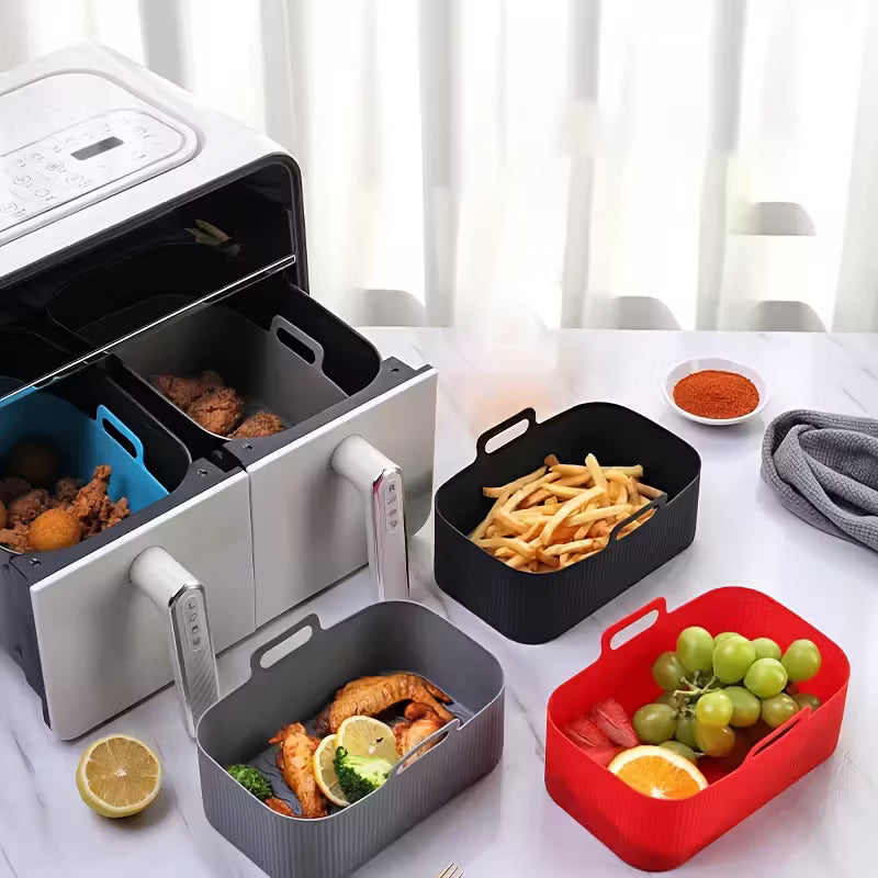 Mūsų silikoninės oro gruzdintuvės formelės iš naujo apibrėžia patogumą ir saugumą. Skirtingai nei plonos popierinės ar metalinės formelės, jos yra daugkartinės, atsparios karščiui ir saugios maistui – taupo jūsų pinigus, laiką ir pastangas, kartu užtikrindamos tobulai iškeptus patiekalus.