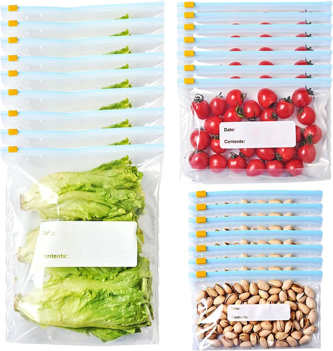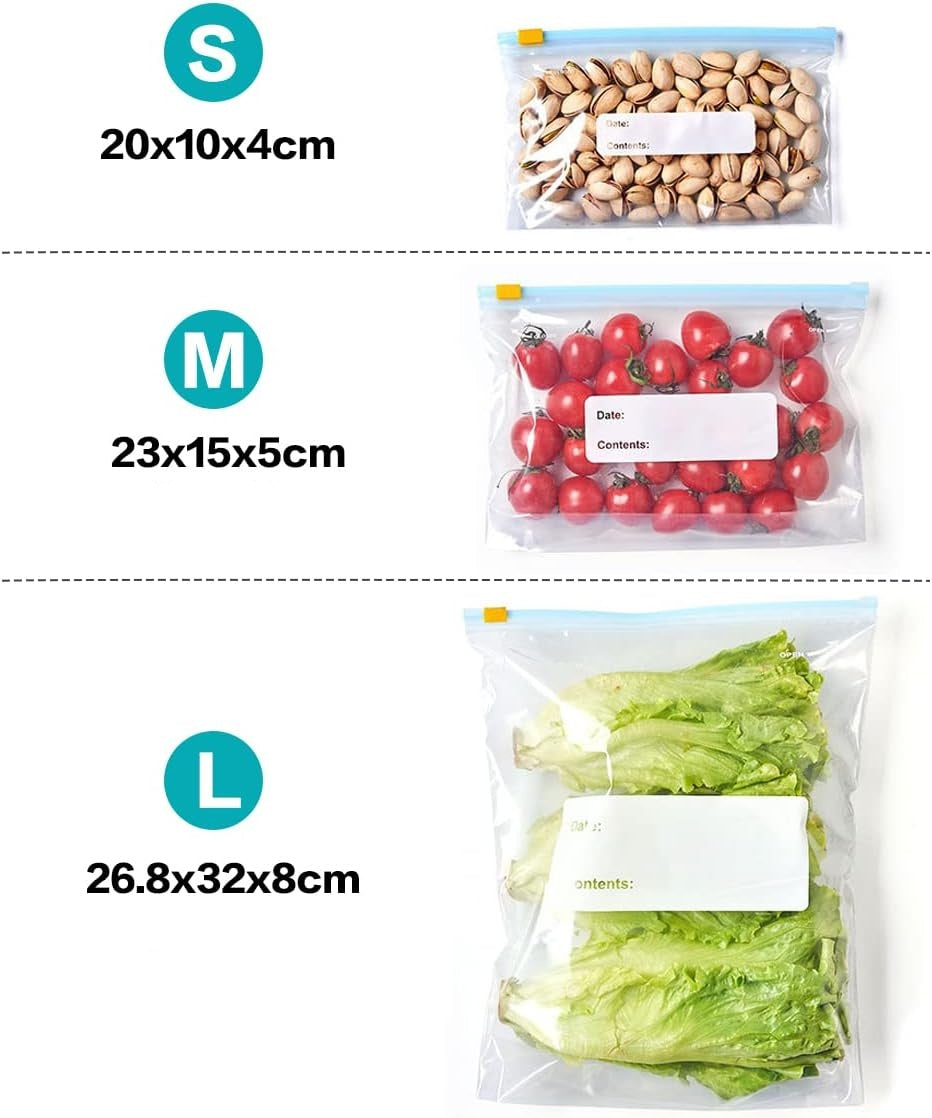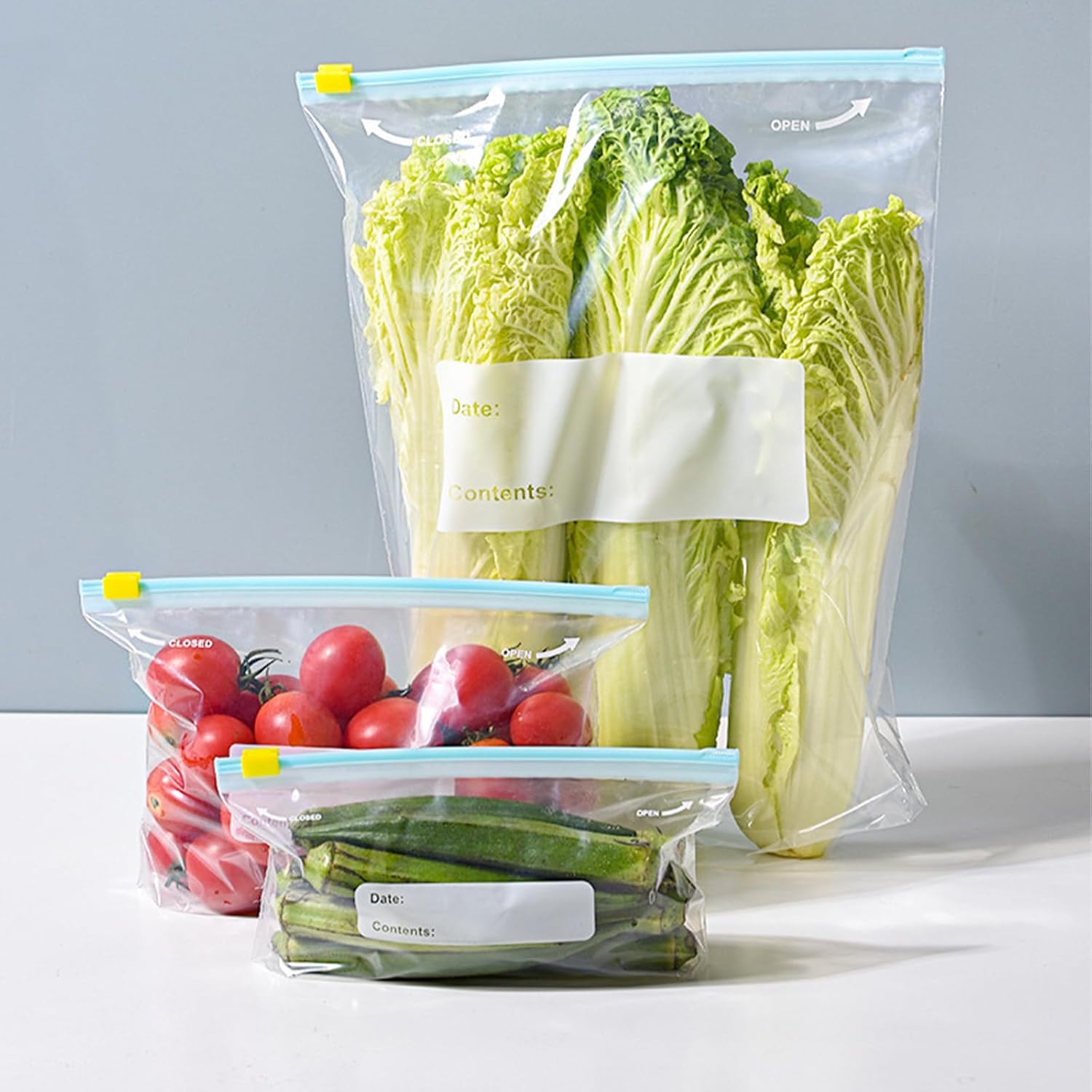 Šios ziplock maišeliai sukurti tam, kad jūsų vaisiai, daržovės, mėsa ir likučiai išliktų švieži ilgiau. Sukurdami sandarią aplinką, jie apsaugo maistą nuo oro poveikio, todėl jis visada išlieka traškus, sultingas ir skanus.